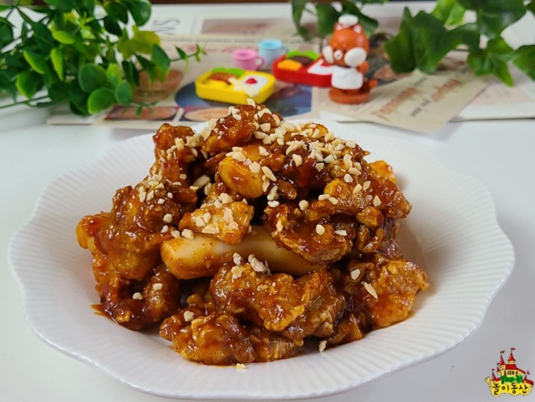 Experience the perfect balance of crispy exterior and moist interior with this Dakgangjeong! Baked in the oven for a healthier, lighter taste, this dish is a delightful treat. Enjoy the savory and sweet-spicy glaze coating tender chicken pieces.