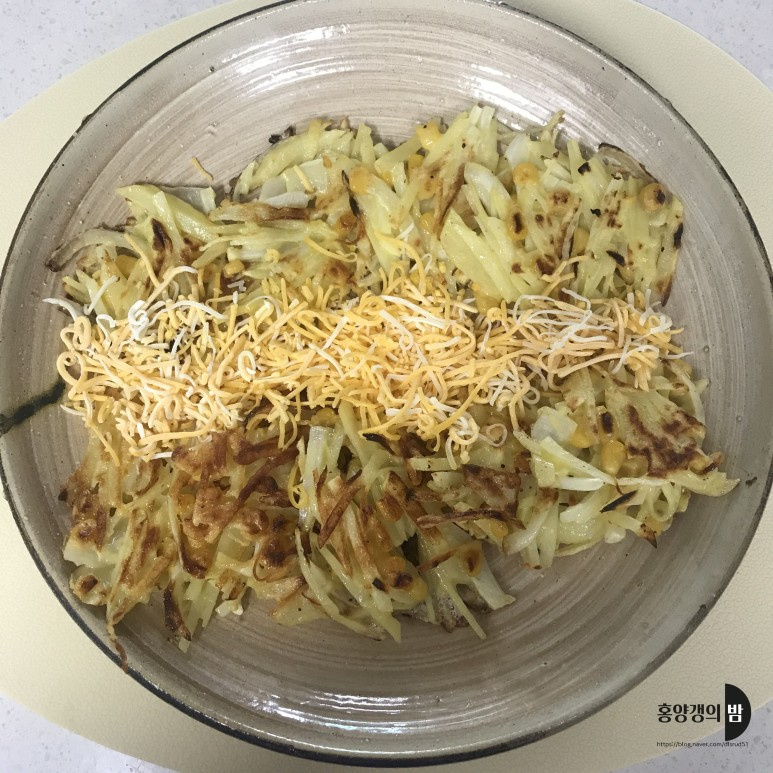 In a mixing bowl, combine the julienned potatoes and onions. Add the canned corn kernels, pancake mix, and the egg yolk. Mix everything together until well combined. The pancake mix will act as a binder.