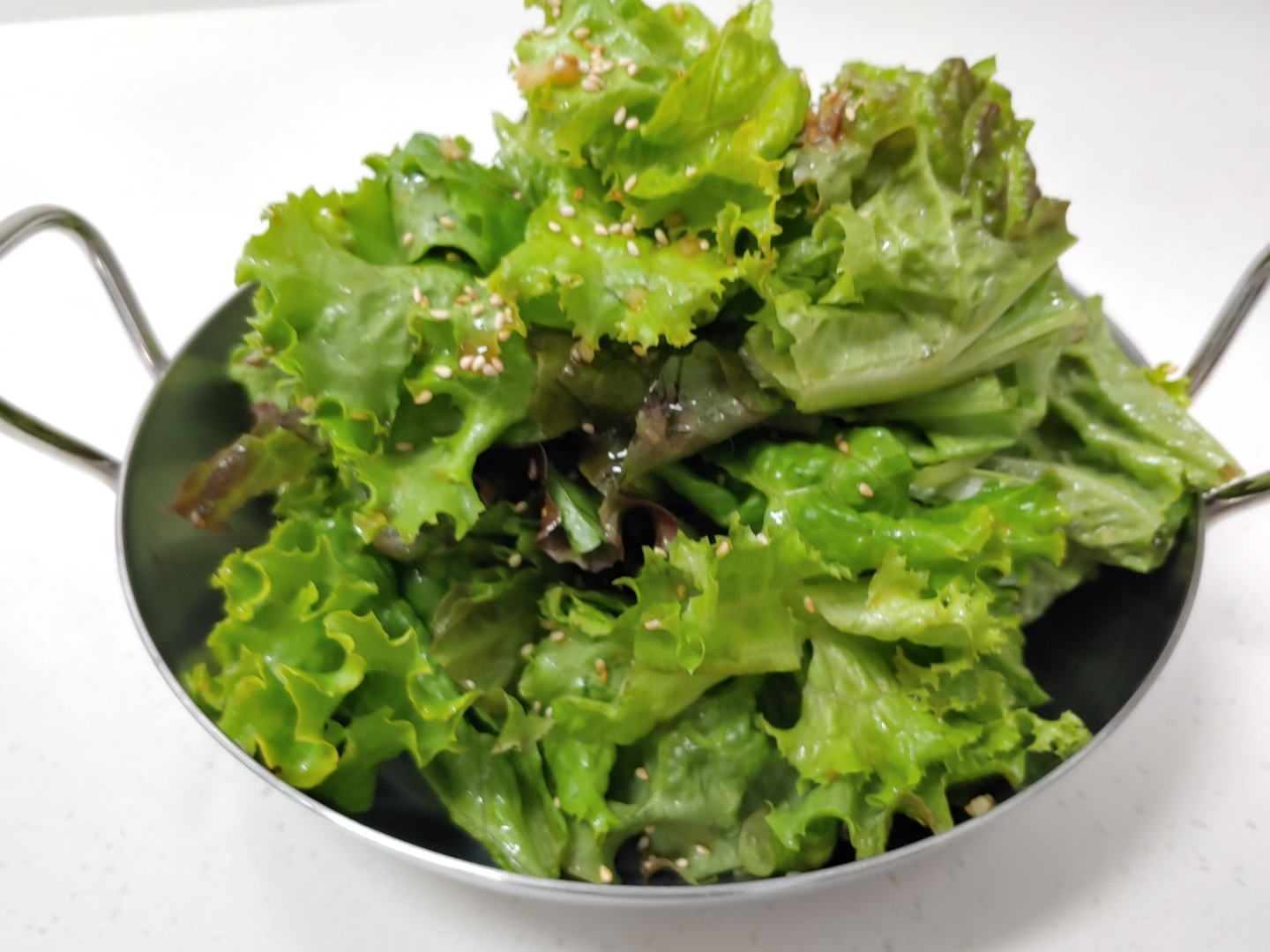 Thoroughly wash the 100g of fresh lettuce. After patting it dry, gently tear it into bite-sized pieces and place them into a large mixing bowl. Once the lettuce is prepared, we’ll move on to the next step.