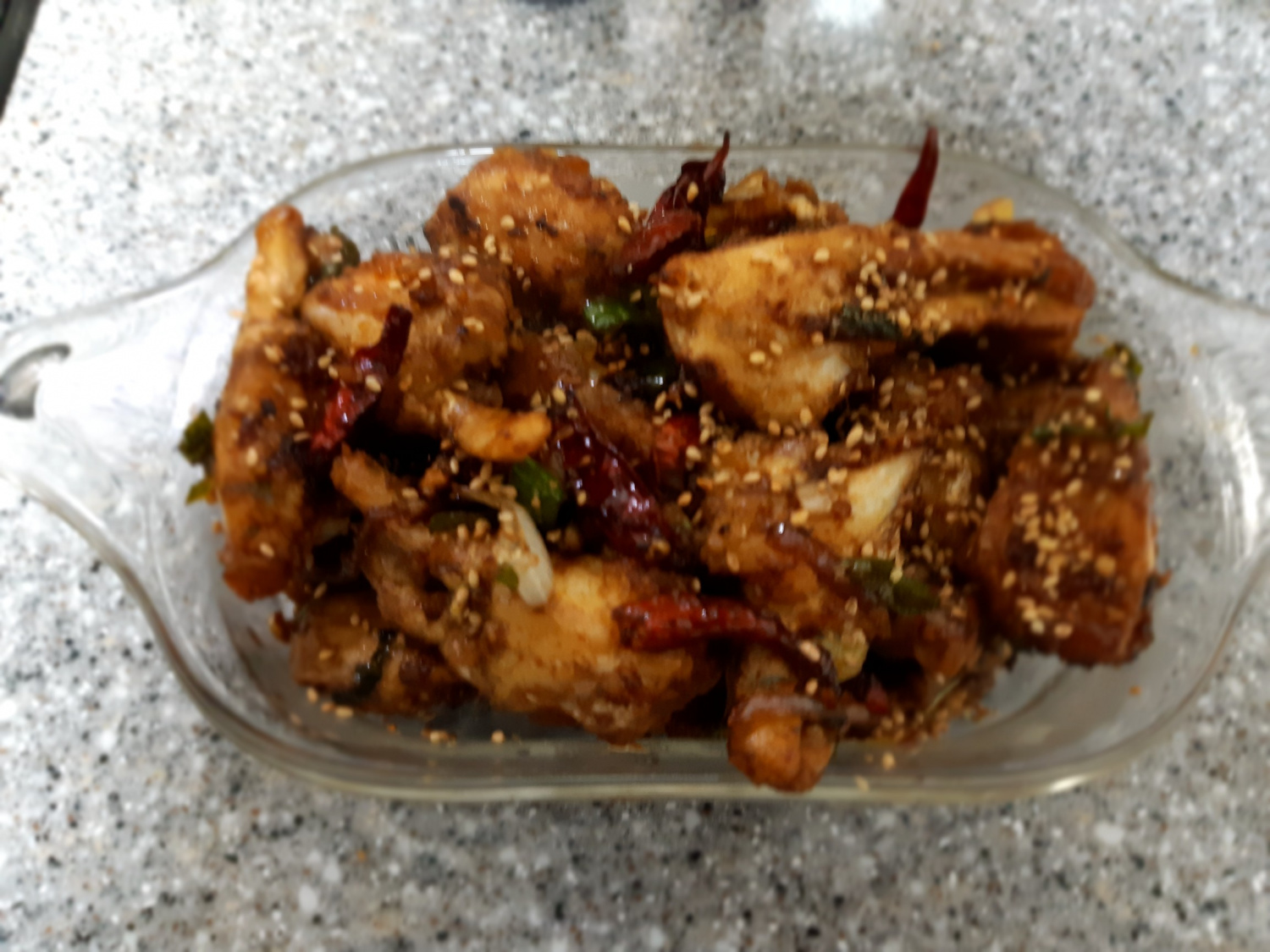 Transfer the finished Kkanpunggi to a serving plate and sprinkle generously with toasted sesame seeds. The delightful combination of crispy texture and sweet-spicy flavor makes this an excellent appetizer or a satisfying main dish for any meal.