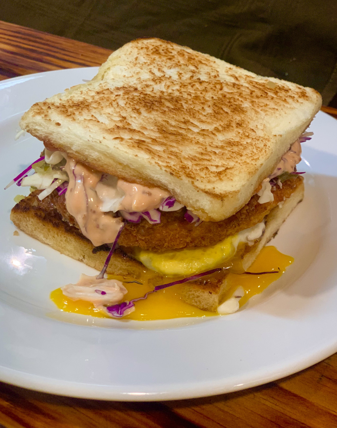 Let’s assemble the sandwich with fresh vegetables and the sauce. Thinly shred the cabbage to maintain its crisp texture. Finely chop the pickles to add a tangy bite. In a small bowl, combine the strawberry jam, ketchup, mayonnaise, and whole grain mustard. Whisk together until smooth to create your special sauce. Now, layer the ingredients onto the toasted bread. Spread a thin layer of strawberry jam on one slice of toast. Top with the fried egg, the crispy halibut patty, shredded cabbage, the prepared sauce, and finally, the chopped pickles. Feel free to adjust the layering order to your personal preference for the ultimate sandwich experience.