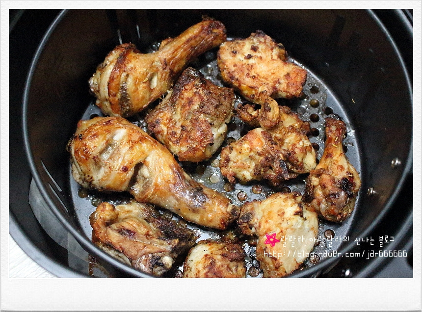 After 15 minutes, carefully remove the chicken from the air fryer and flip each piece over. Return it to the air fryer and cook for another 15 minutes at 200°C (390°F) to ensure the other side is golden brown and cooked through.