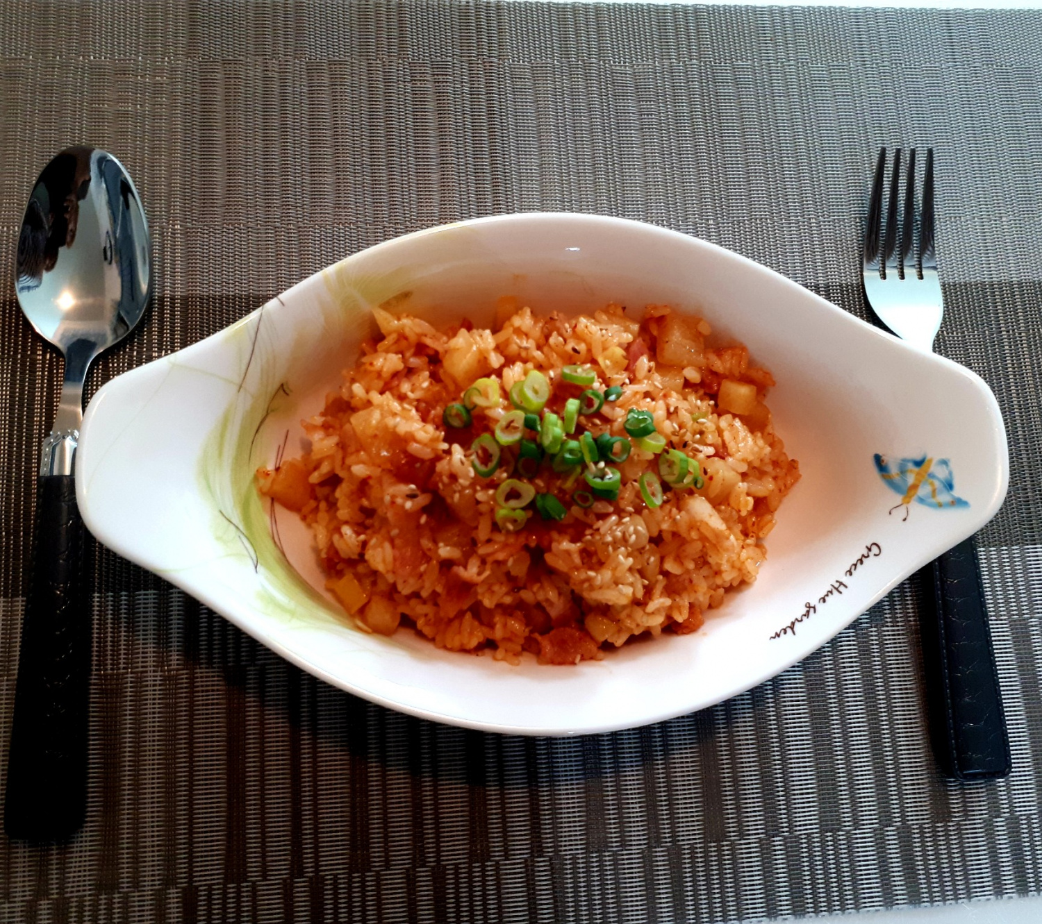 Finally, sprinkle a tablespoon of sesame seeds for extra nutty flavor, and your delicious Kkakdugi Bacon Fried Rice is ready! Enjoy it while it’s hot.