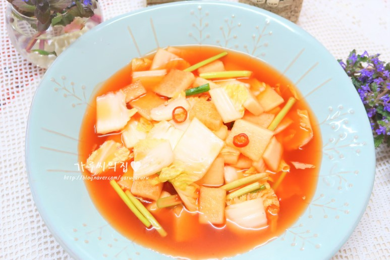 This Napa Cabbage Water Kimchi (Mul Kimchi) offers a delightful combination of crunchy radish and tender yet firm cabbage, creating a pleasing textural contrast in every bite. The refreshing and spicy broth is perfect for whetting your appetite and cleansing your palate. Follow this recipe to easily make delicious water kimchi at home, just like a professional!