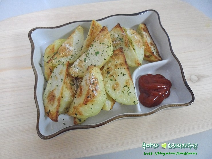 Your golden and appetizing potato wedges are ready! For an extra touch of flavor, sprinkle some grated Parmesan cheese over the finished wedges. The salty and savory taste is delightful! Serve them with ketchup or your favorite dipping sauce for an even more enjoyable experience.