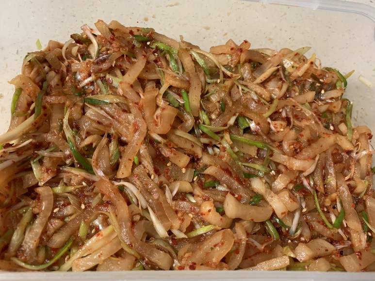 Crispy Pickled Radish and Scallion Salad (Jjanjipachae Muchim)