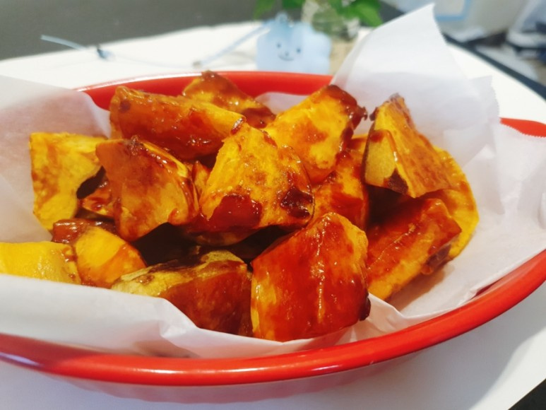 • 4 Tbsp cooking oil (1 Tbsp for coating sweet potatoes + 3 Tbsp for syrup)