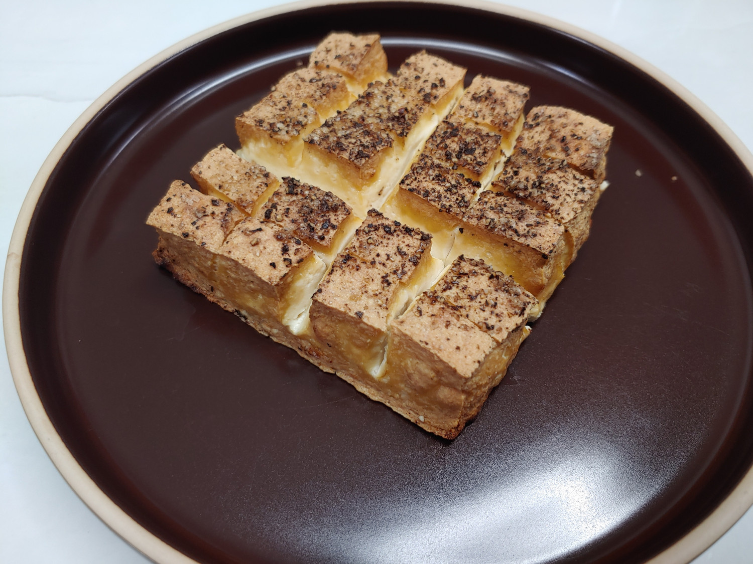 Similarly, sprinkle 0.5 tablespoon of black pepper all over the tofu to add a layer of flavor. Feel free to adjust the amount according to your preference.