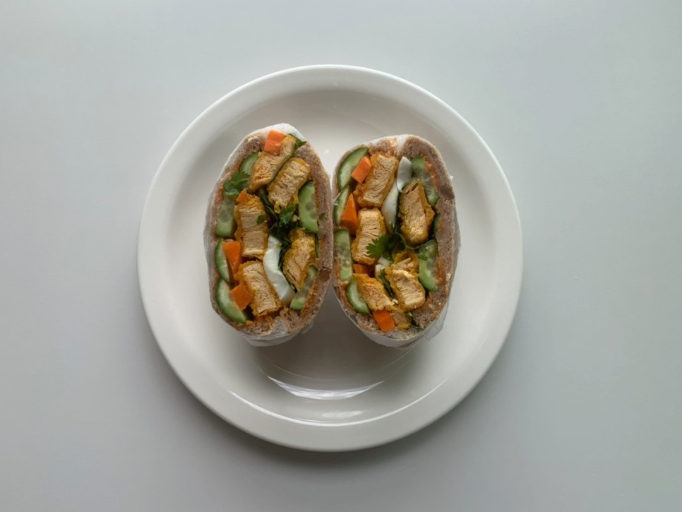 Feel free to slice the cucumber and carrot casually without worrying about precise shapes. If you have pickled radish or sprouts on hand, adding them will bring a refreshing and complex flavor to your sandwich. (I omitted them as I didn’t have them prepared.)