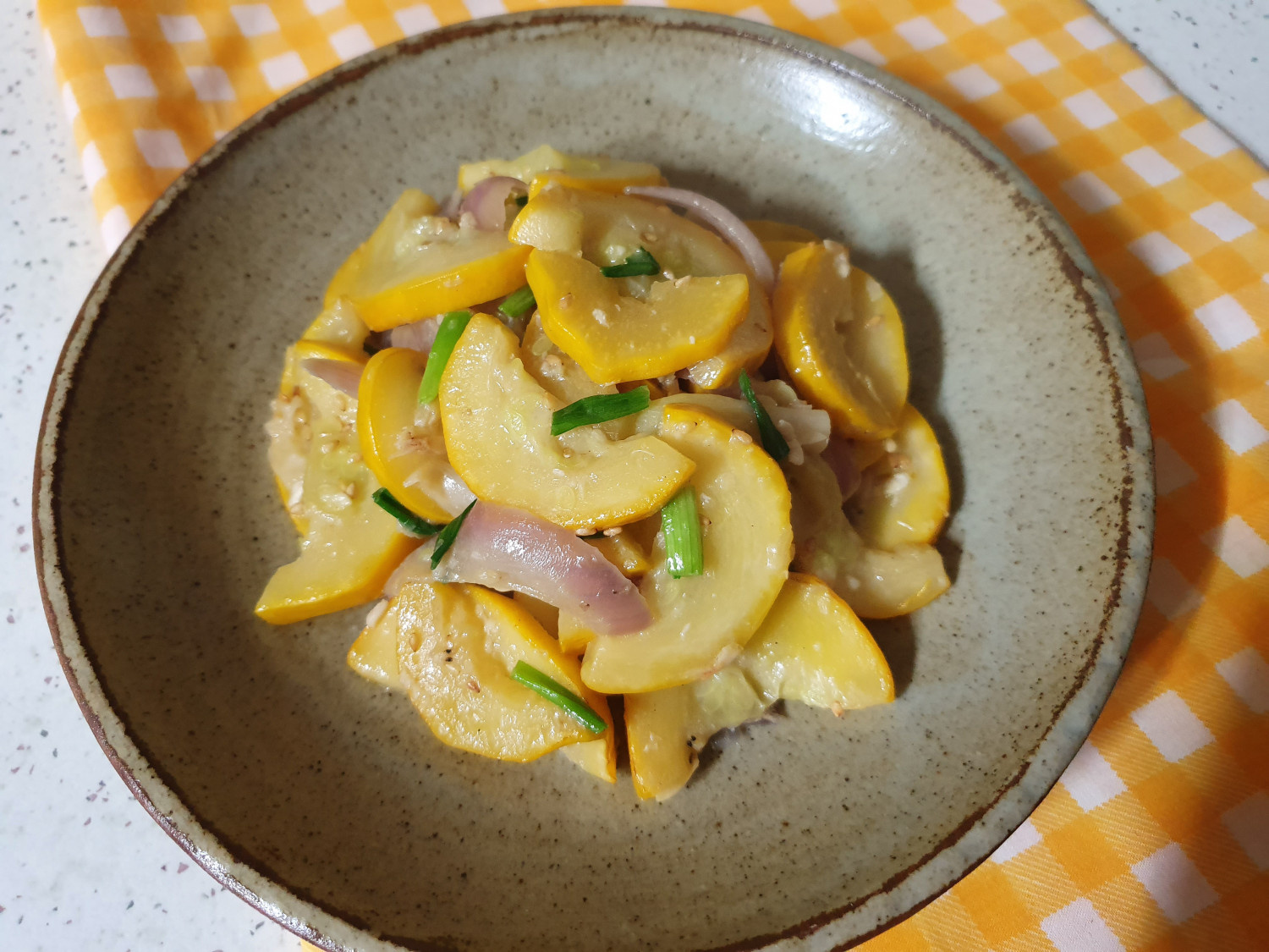 Vibrant Yellow Zucchini Stir-fry Made with Salted Shrimp