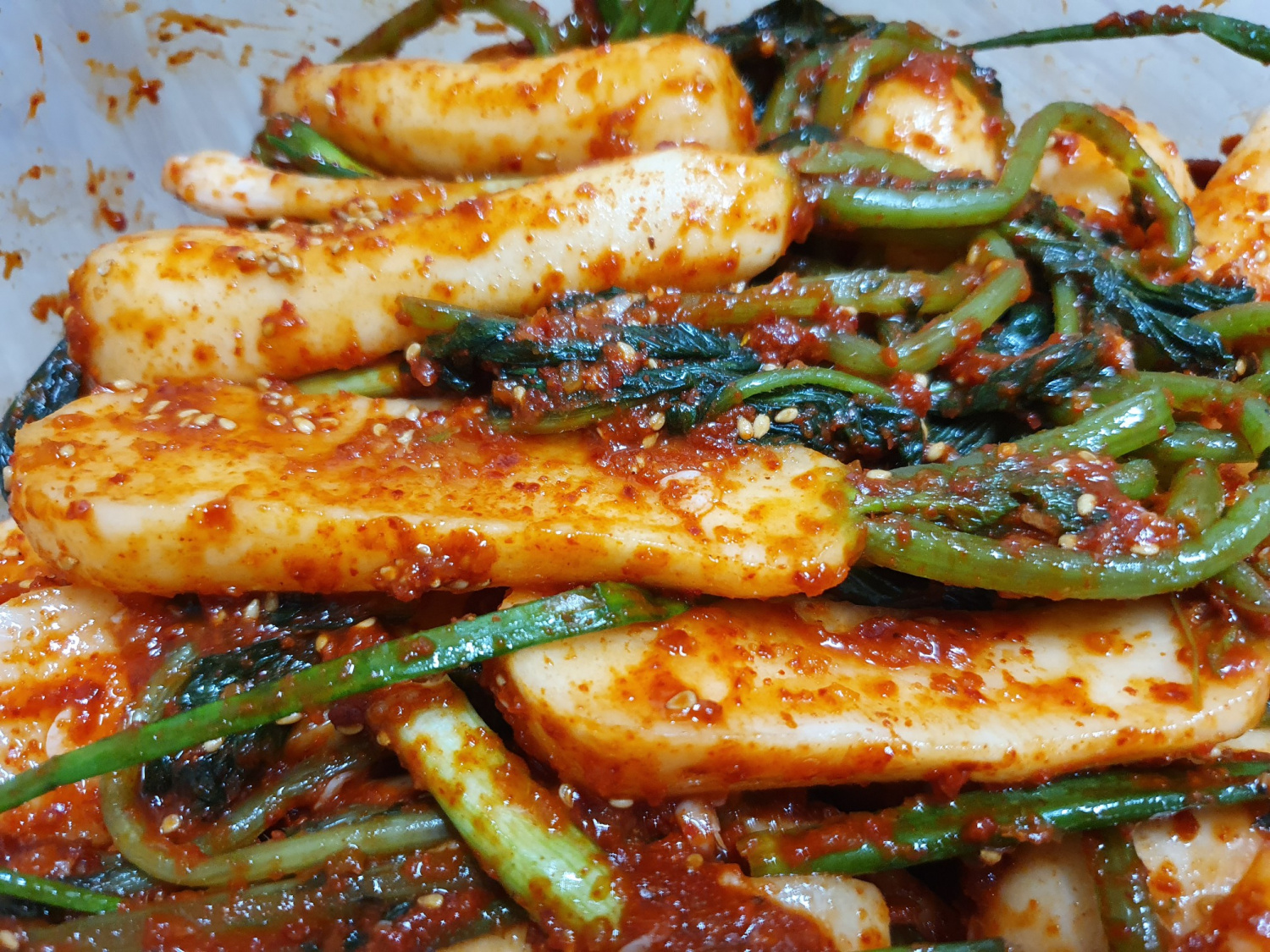 Add the well-salted young radishes to the prepared seasoning paste and mix gently.