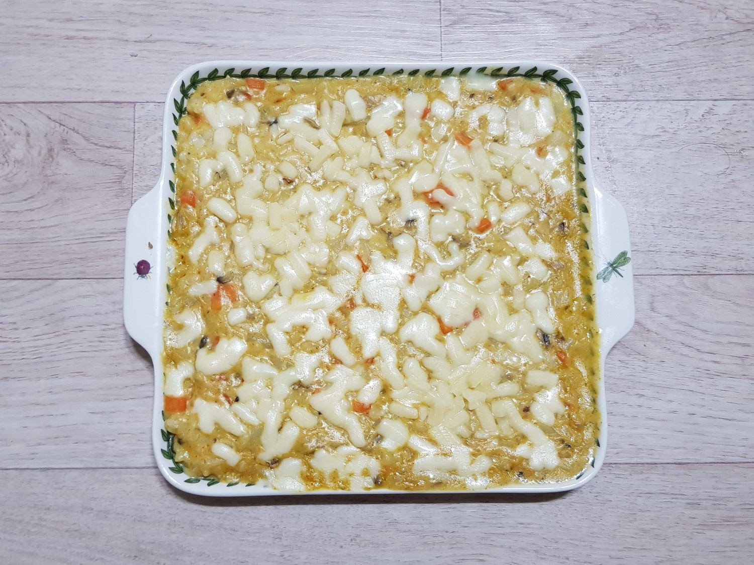Ladle the prepared risotto into a beautiful serving dish. Now for the crowning glory! Generously sprinkle the shredded mozzarella cheese all over the top. You can enjoy it like this, with the cheese melting beautifully, but for an even more decadent experience, microwave it for another 1.5 to 2 minutes. This will make the cheese extra soft, gooey, and wonderfully stringy, creating a fantastic visual and taste sensation. And just like that, a super simple, super speedy curry cheese risotto that rivals any restaurant is ready right in your own home! Enjoy every delicious bite!^^♡