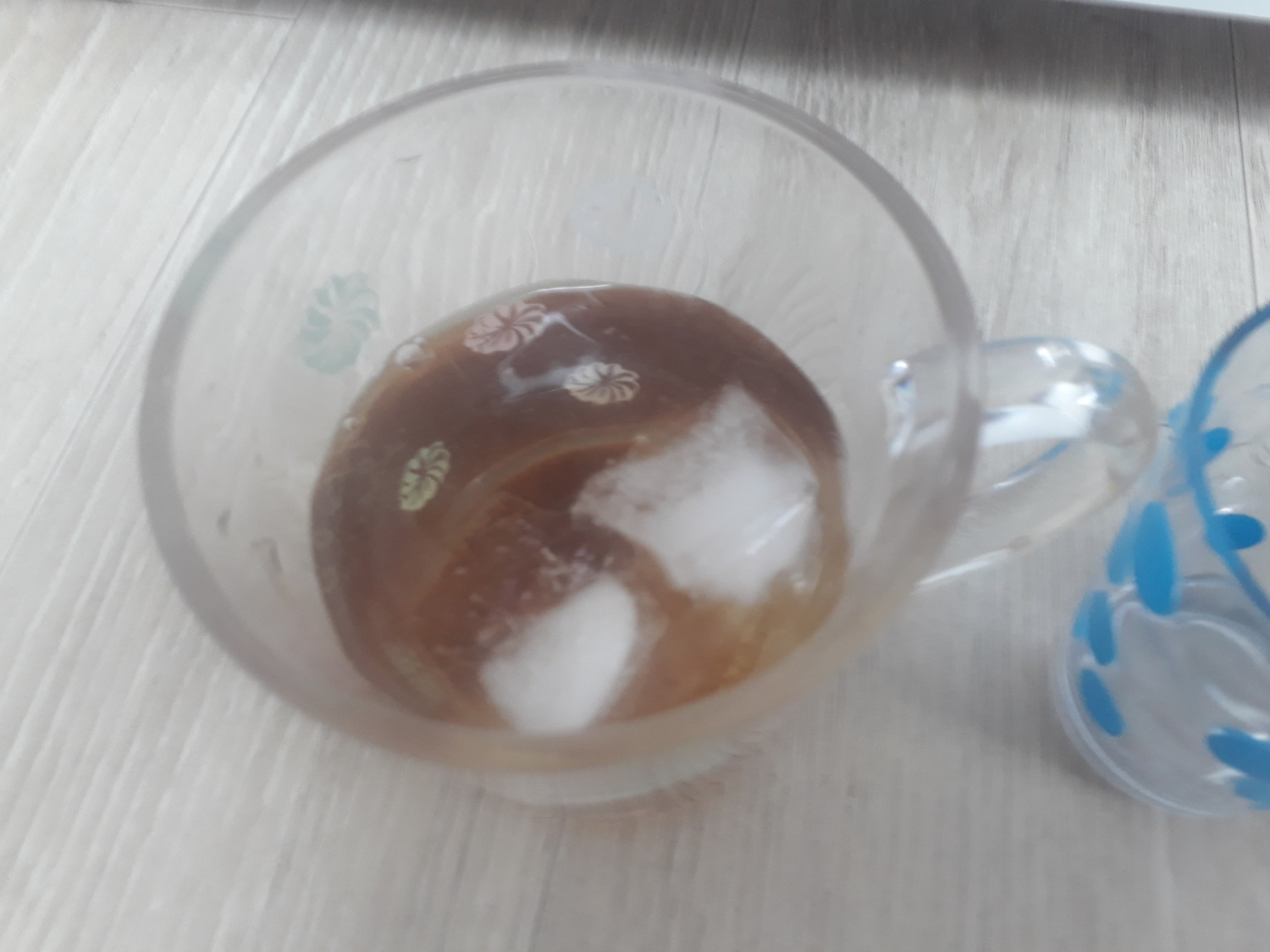 Pour 1/2 small cup of cold water into your serving cup. You can adjust the amount of water to your preference, but too much might dilute the sweetness, so aim for a moderate amount.