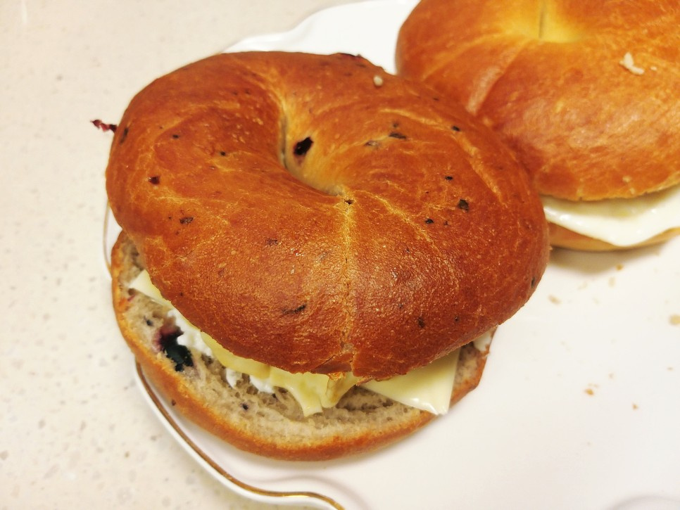 For this particular sandwich, we used plain bagels and blueberry bagels. Feel free to use any type of bagel you enjoy for a wonderful sandwich experience.
