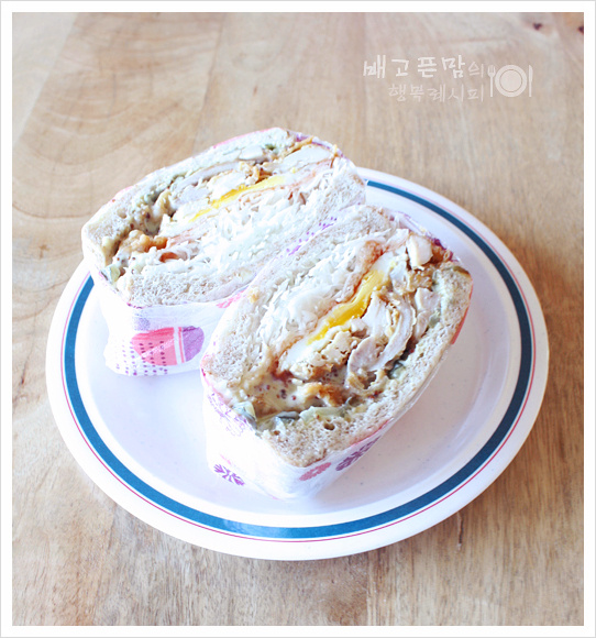 Cover with the remaining 2 slices of bread to complete the sandwich shape. Wrap the sandwich tightly with plastic wrap to secure its form, then cut it in half for easy handling. You’ve now made a fantastic chicken sandwich! Wrapping it tightly with plastic wrap before cutting ensures a neat presentation.