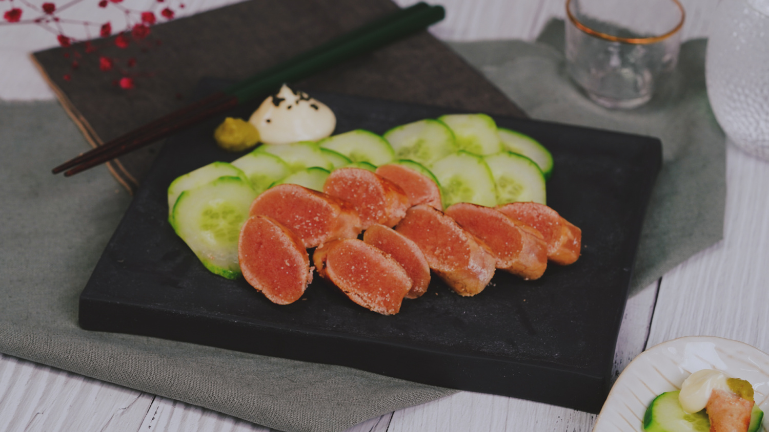 Once grilled to perfection, cut the pollack roe into bite-sized pieces. Arrange them on a serving plate alongside the sliced cucumber. Finish by serving with mayonnaise and wasabi, adjusted to your personal preference. Enjoy your delicious grilled pollack roe! 🥂
