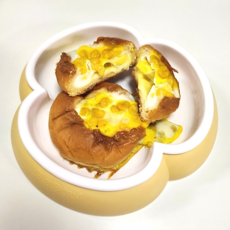 I made these ‘Morning Egg Breads’ as a simple breakfast option. They take very little time to cook and are incredibly easy to prepare, making them perfect for busy mornings. Since this is for babies, I haven’t added any extra seasoning, but the combination of cheese and corn kernels is already delicious enough for little ones. The soft bread, savory egg, and sweet corn create a delightful harmony that will captivate your child’s taste buds.