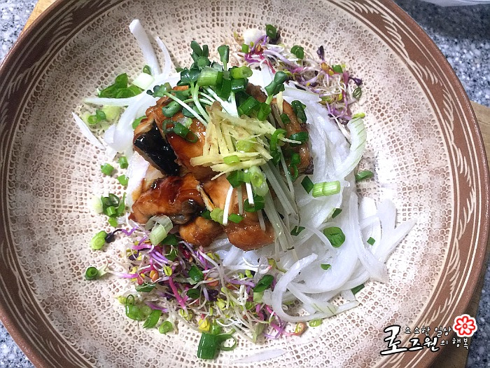 Now, let’s assemble the rice bowl. Serve a generous portion of warm rice in a large bowl. Top the rice with the julienned onions, followed by the cooked teriyaki eel. Garnish artfully with the chopped green onions, arranged bean sprouts, mixed sprouts, and julienned ginger. Finally, drizzle any remaining teriyaki sauce from the pan over the top, according to your preference.