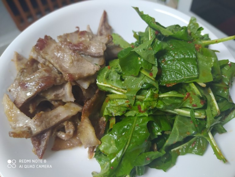 Hello everyone, it’s Henri’s Sister! Did you know that white dandelion seeds have flown into the cracks of the stones in my flower garden and have been growing for several years? I absolutely love vegetables with a slightly bitter taste. Things like raw go-deul-paegi leaves and dandelion leaves, which have that delightful bittersweet flavor! My mom doesn’t eat them because she says the cats keep stepping on them, haha. So, I enjoy making a special meal just for myself. I also had some pork shoulder in the freezer that was meant for stew, so I thought grilling a bit of it would be perfect to pair with the salad. This simple yet flavorful meal is perfect for a light and refreshing lunch or dinner!