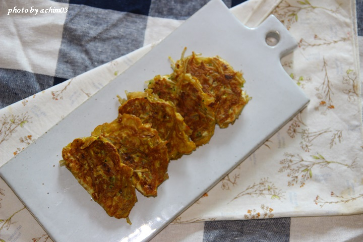 Heat a little cooking oil in a pan over medium-low heat. Spoon about a tablespoon of the mixture onto the pan, shaping them into dumplings. You can make them oval or half-moon shaped, whichever you prefer. Cook them slowly over medium-low heat.