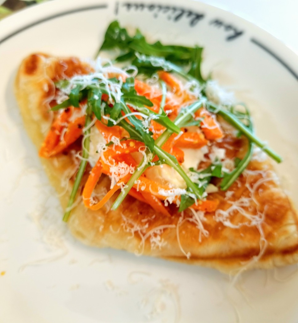 Gently remove the perfectly cooked croissant waffle from the maker. While it’s still warm, add a dollop of creamy cheese spread on top. Then, add a generous portion of your pre-made carrot slaw.