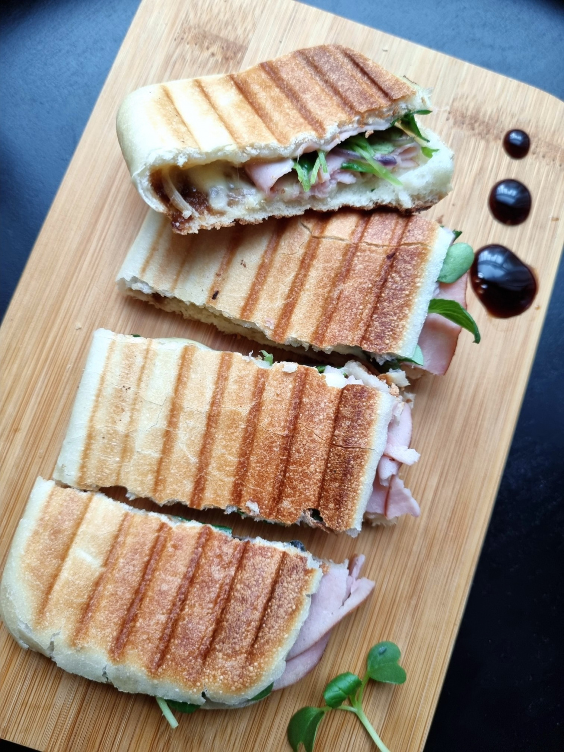 Golden Crispy Ham and Cheese Ciabatta Panini
