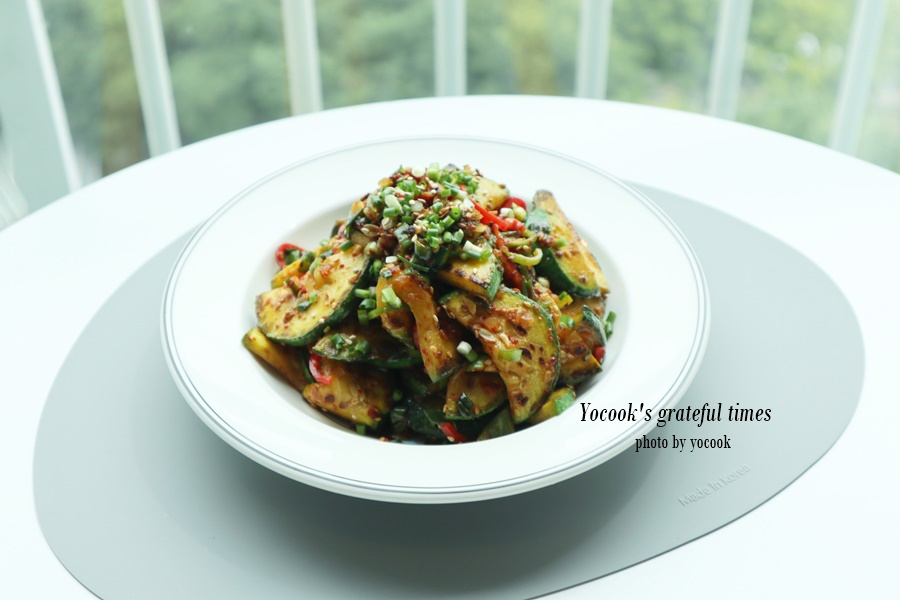 Zucchini is delicious, but round zucchini is particularly sweet and flavorful these days, so I make it often. It’s great grilled and dipped in seasoning, but I also like to lightly toss it with seasoning for a tender, subtly sweet, and crisp side dish that pairs perfectly with rice. This grilled zucchini salad is a delightful way to enjoy zucchini!