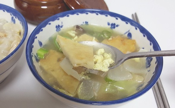 Hearty and Clean Eomuk Egg Drop Soup with King Oyster Mushrooms