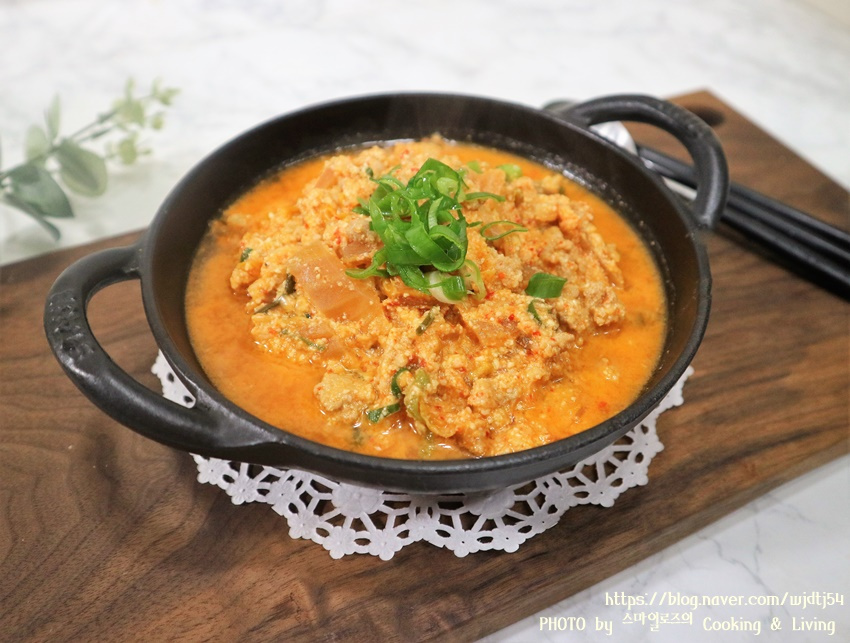 Nowadays, many convenient pre-made bean curd grounds are available, making this stew easier than ever to prepare. If you have dried soybeans, such as yellow beans, black beans, or seoritae, at home, simply soak them overnight before bed. In the morning, blend them in a mixer and cook. You can easily whip up a delicious and healthy bean curd stew.