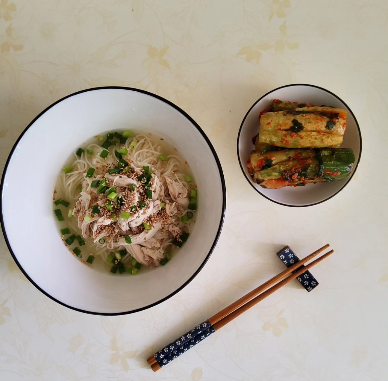 For an even more satisfying meal, consider serving this chicken noodle soup with a side of kimchi, such as crisp cucumber kimchi (oi sobagi). The refreshing tang of the kimchi beautifully complements the rich flavors of the soup, creating a truly delightful culinary experience.