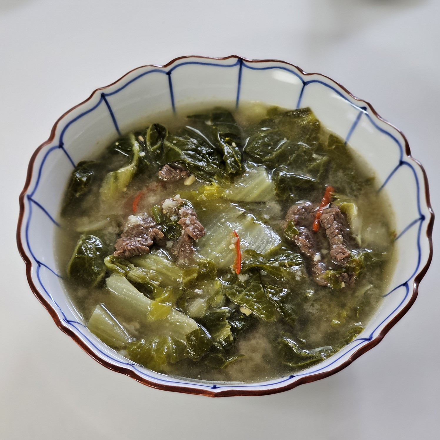 Introducing our ‘Spring Cabbage and Beef Doenjang Guk,’ a delightful fusion of spring’s fresh aroma and the deep flavors of beef. This stew, based on anchovy broth, boasts a wonderfully savory and clean taste, with the key being to simmer it long enough for the spring cabbage to become tender. It’s a simple yet satisfying meal that can rival even Yukgaejang in its heartiness. Enjoy a bowl of warm, deeply flavored doenjang guk today!