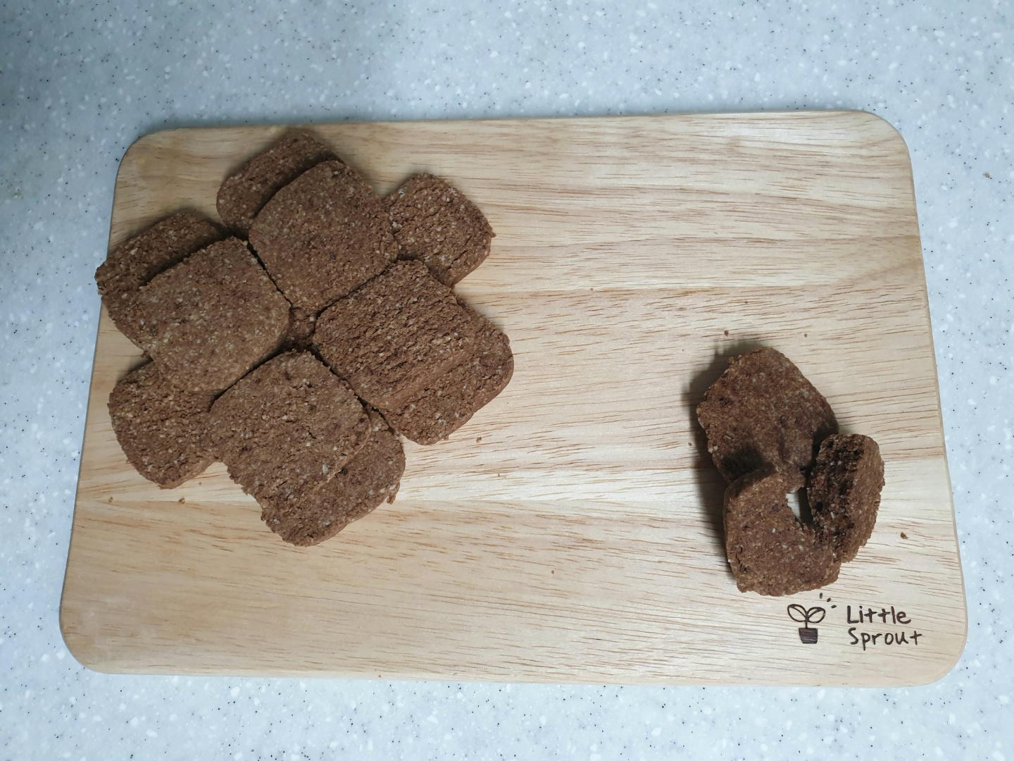 Remove the chilled dough from the freezer. Slice it into your preferred thickness, approximately 1 cm. Arrange the sliced cookies on a baking sheet lined with parchment paper, leaving a little space between each one.