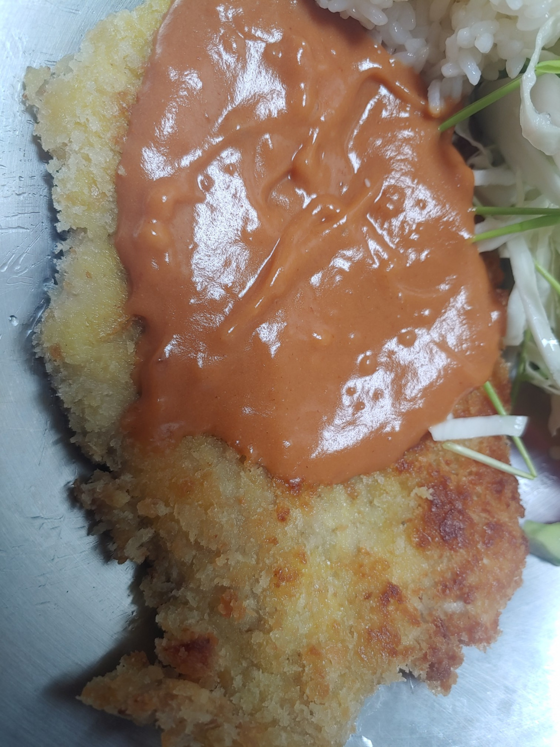 Serve your crispy donkatsu with a side of shredded cabbage salad dressed with mayonnaise and ketchup, reminiscent of traditional Western-style diners. Enjoy your homemade classic donkatsu!