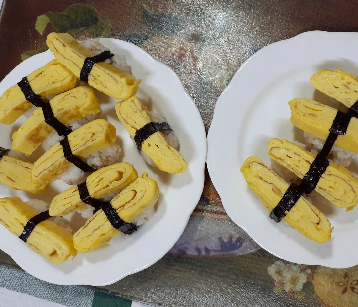 < Homemade Soft and Sweet Tamagoyaki Sushi >