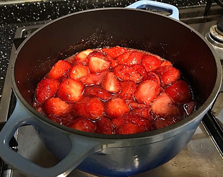 The sweet and tangy aroma of strawberries will fill your kitchen as the jam thickens. You’ll be tempted to taste it right away, but it’s still a bit thin, so let it reduce a little longer.