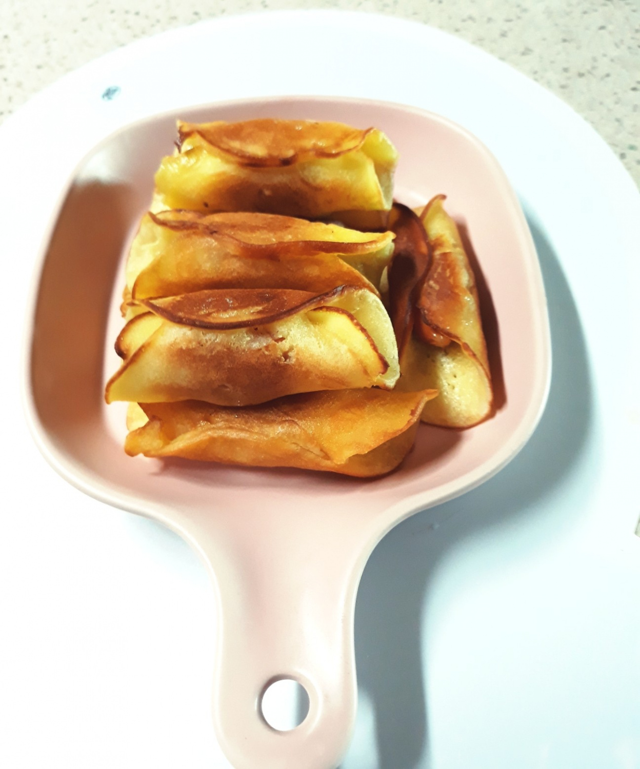 Now, let’s assemble the mini hot dogs! Heat a non-stick pan over medium-low heat and lightly grease it with cooking oil, spreading it evenly with a paper towel. Ladle about one spoonful of the pancake batter onto the pan, spreading it into a round shape. Aim for a size that’s easy for little hands to hold and eat.