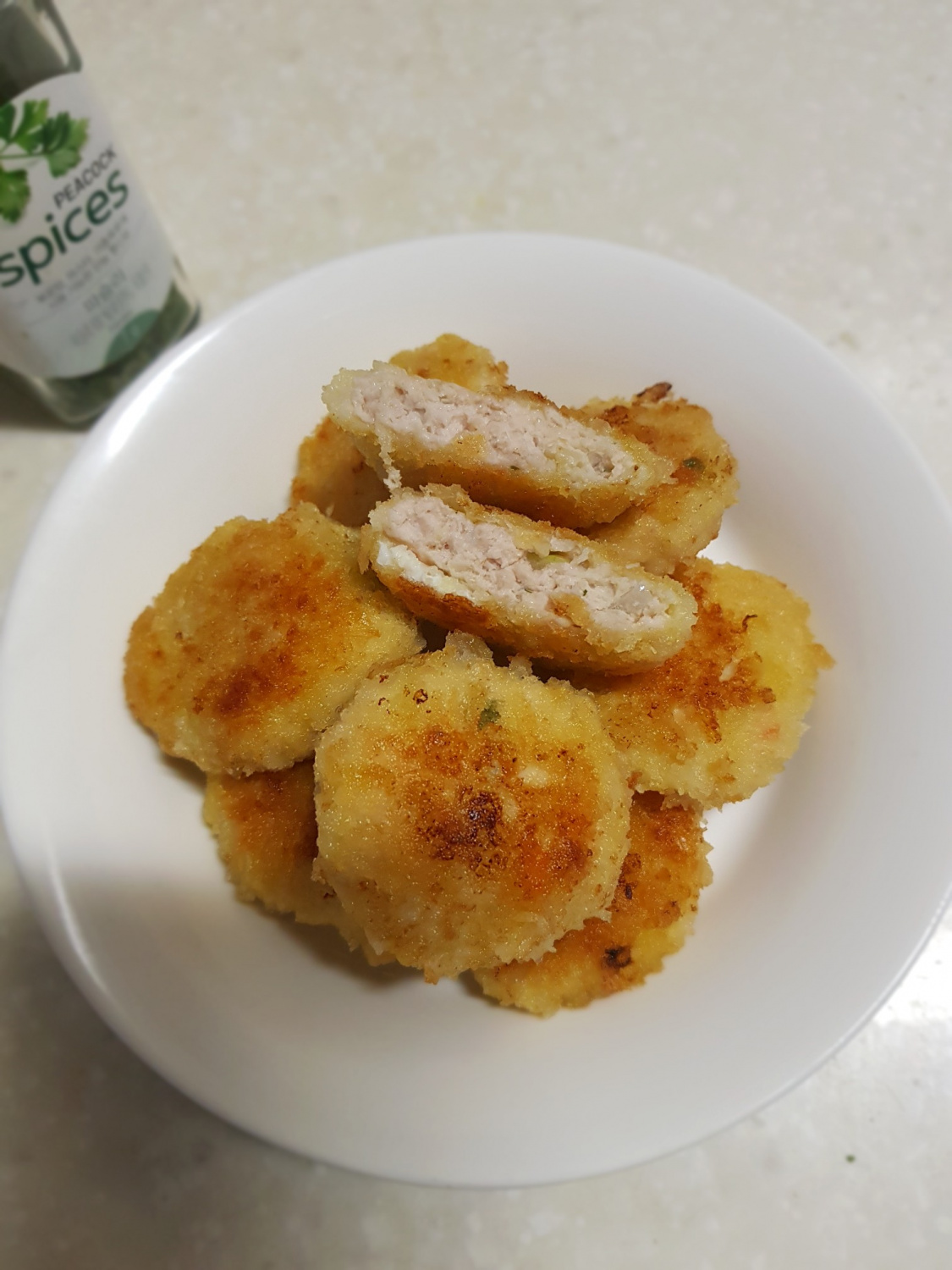 My daughter, who’s almost 15 months old, is always looking for new foods! There’s so much out there for her to try. So, I prepared these mini pork cutlets. I took a little bite to taste, and almost ate them all myself! Guess I still have a child’s palate. 😉