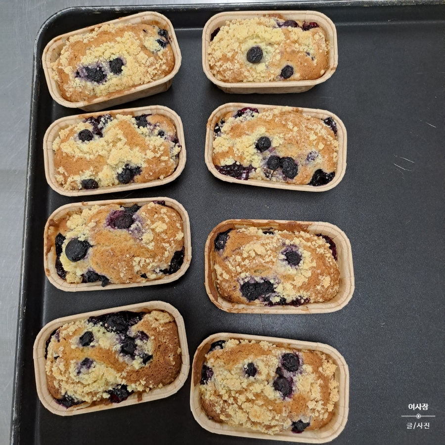 In the photo, the muffin on the left is mine, and the one on the right was baked by another participant. Notice how the amount of crumble and the blueberry decoration create unique results!