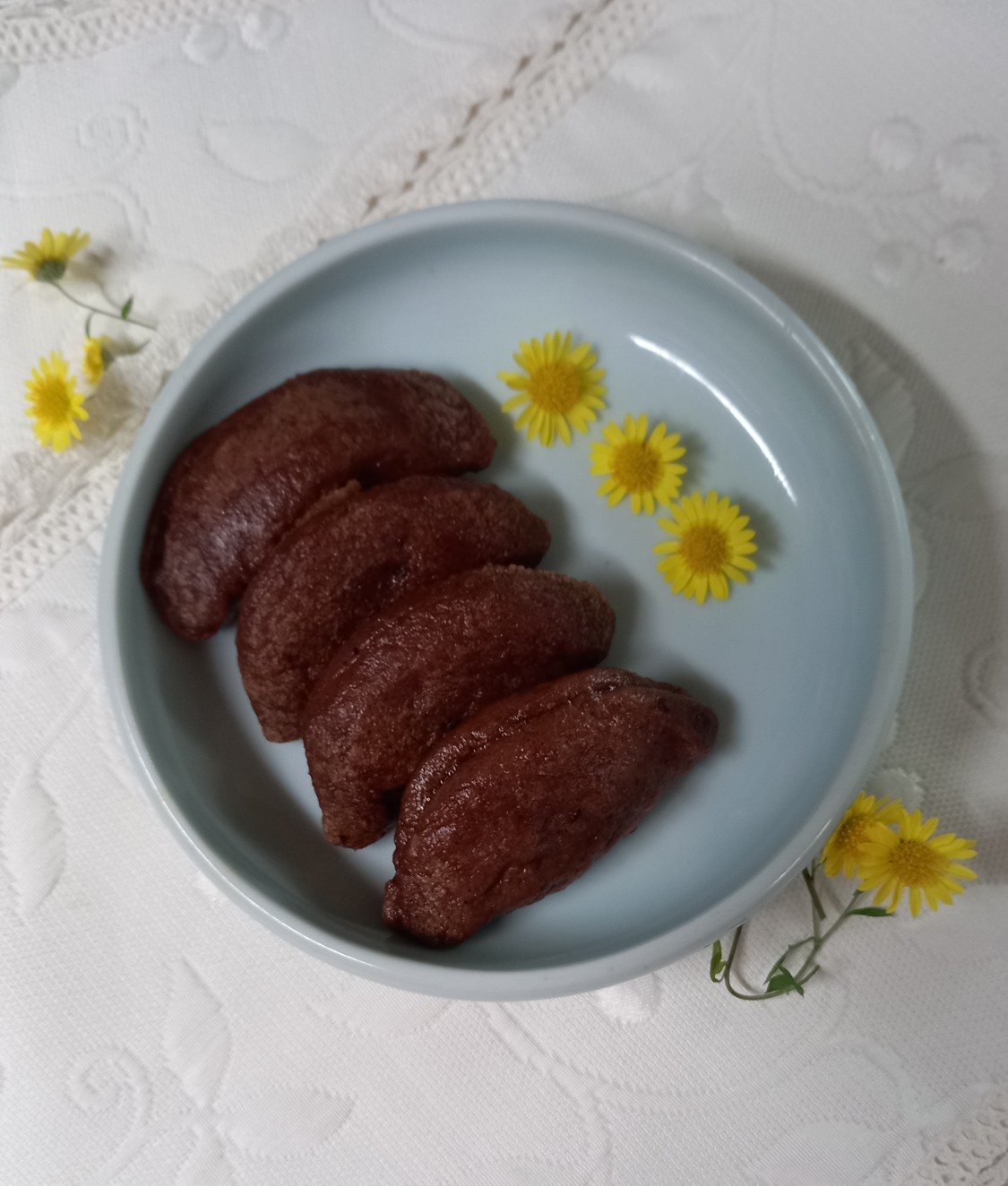 Place a portion of the red bean paste filling onto one half of the cooked sorghum pancake. Fold the other half over to cover the filling, creating a half-moon shape. Gently press the edges to seal the filling inside. For easier handling and shaping without burning your fingers, wear a food-safe glove when pressing the edges. Lightly pan-fry both sides again until golden brown.