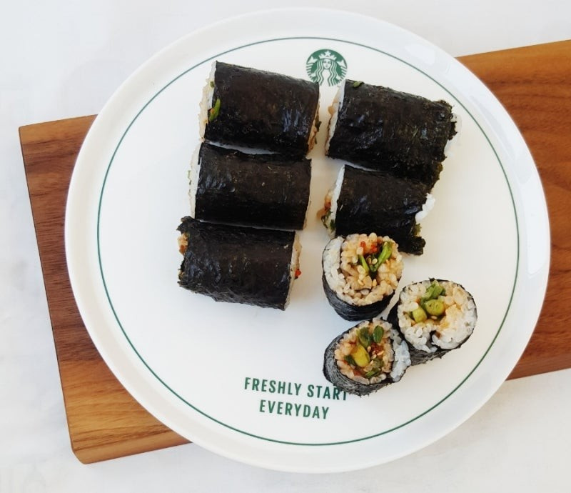 This kimbap offers a refreshing yet deep umami flavor without any complicated steps. It tastes like the familiar flavor of rice mixed with just sesame oil, sesame seeds, and salt, but the combination of the pungent green onions and soy sauce makes it even more special. It truly embodies the saying, ‘familiar tastes can be deceptively addictive.’