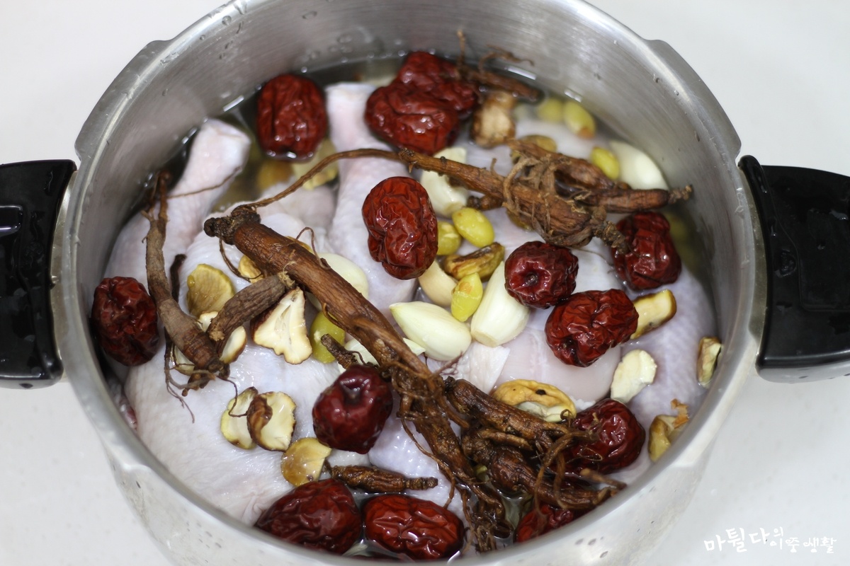 Begin by preparing the ingredients that will enhance the flavor of your Dakbaeksuk. Rinse the dried jujubes, whole garlic cloves, ginkgo nuts, and dried chestnuts thoroughly under running water to remove any impurities. Pay special attention to washing the dried jujubes, as they can accumulate dust.