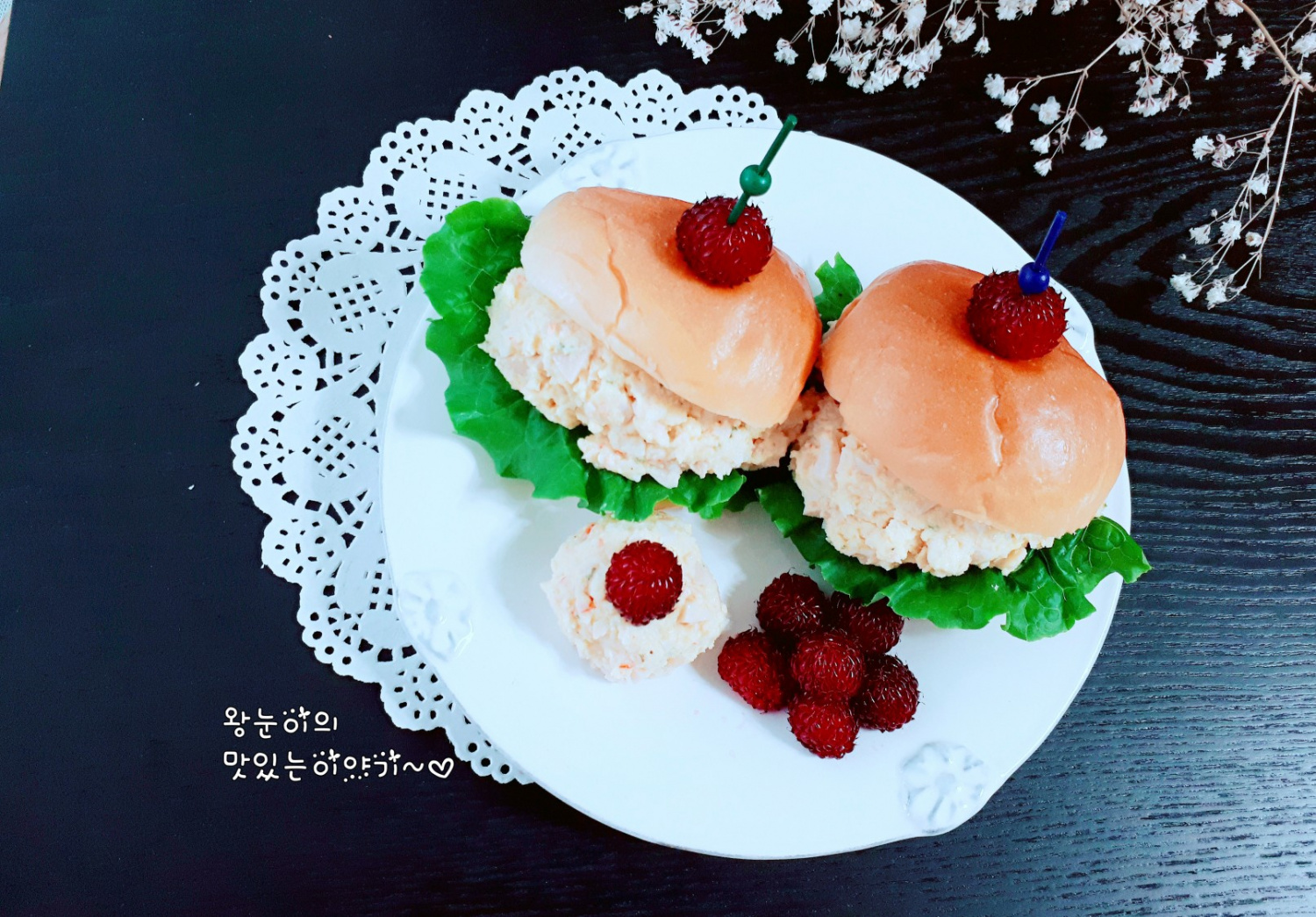 For a final touch, you can add decorative elements! If raspberries are in season, placing a few on top makes the snack even more appealing. Create these delightful potato salad morning buns, perfect for a nutritious and fun snack for children!