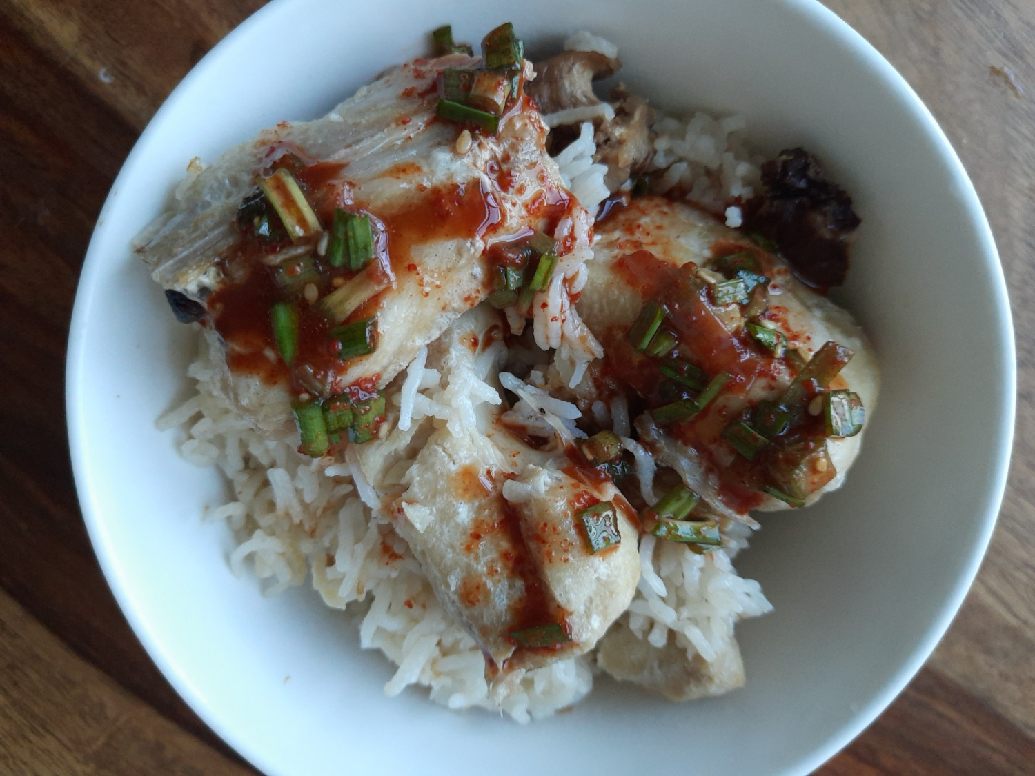 Make the Seasoning Sauce: While the rice is cooking, prepare the seasoning sauce. In a small bowl, combine 2 Tbsp soy sauce, 0.5 tsp red pepper flakes, 1/4 tsp garlic powder, 1 tsp sesame oil, minced green onion, and toasted sesame seeds. Mix well. This sauce is incredibly delicious when mixed with the rice. If you have sushi nori (seaweed sheets), you can also wrap the rice in it for an extra treat.