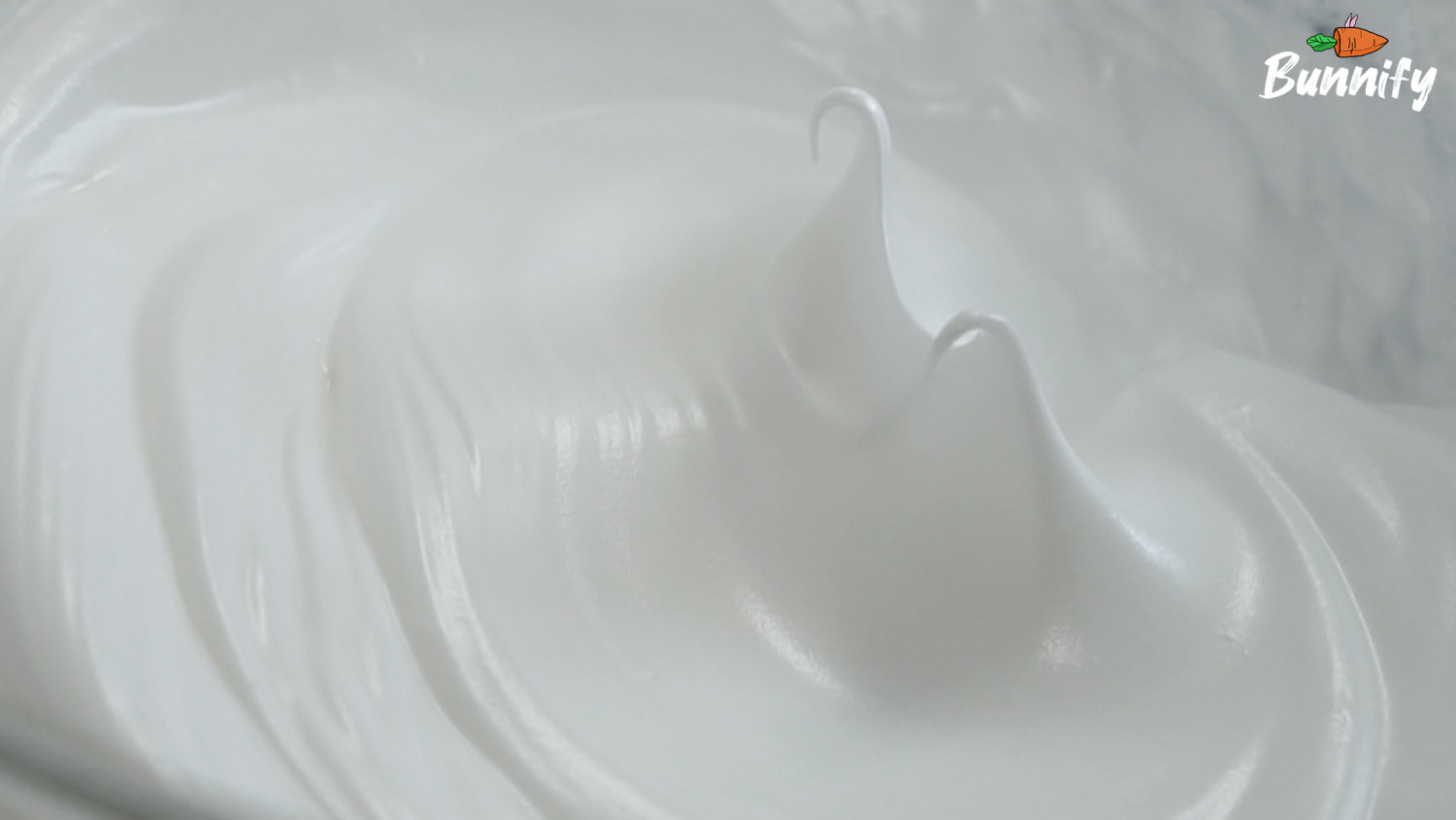 Now, increase the mixer speed to high. Continue whipping until the meringue is stiff and glossy. You’ll know it’s ready when you can lift the whisk and the meringue forms firm, upright peaks that hold their shape. Be careful not to overmix at this stage.