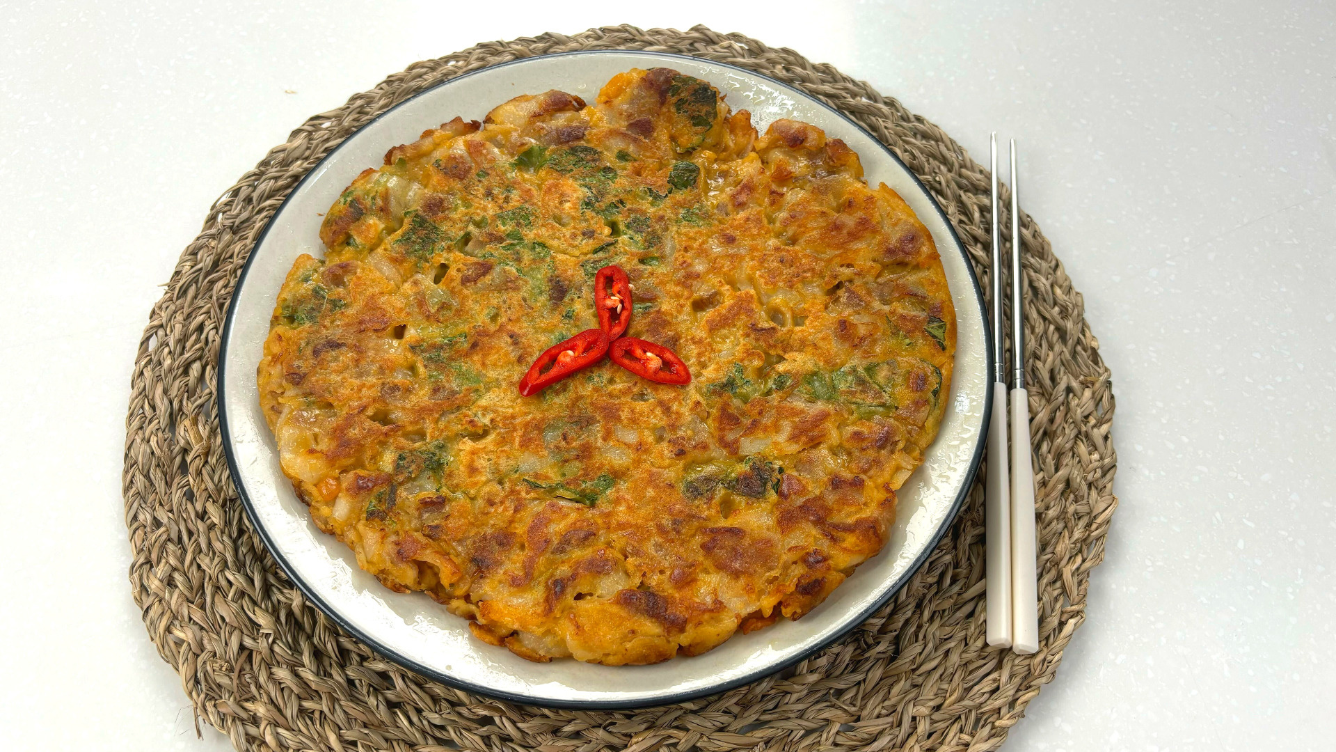 Cook over medium-low heat, flipping occasionally, until both sides are golden brown and crispy. Patience is key to ensure the pancake is cooked through—crispy on the outside and moist on the inside.