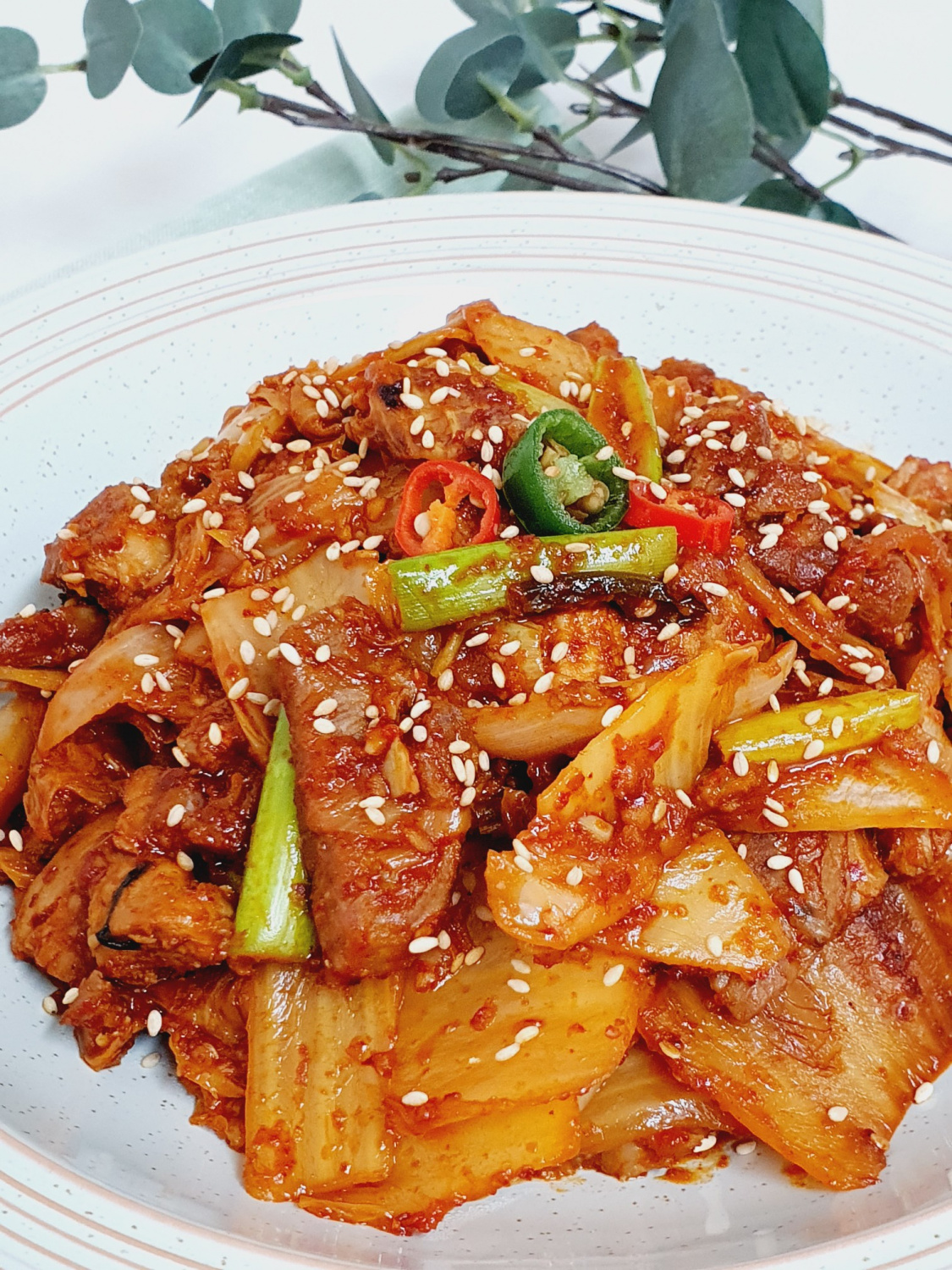 Serve generously in a bowl for a hearty main dish – ‘Pork Neck Kimchi Stir-fry’ is complete! It offers a different charm compared to pork belly stir-fry, being less fatty and more tender and clean. With this delicious stir-fry alone, you won’t need other side dishes. Make this delicious stir-fry now and have a delightful mealtime with your whole family!