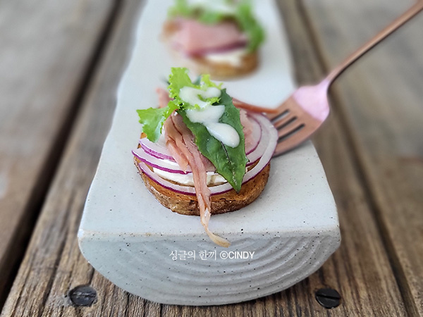Tear or slice the jambon into appropriate sizes and artfully place it on top of the onions. The savory, slightly salty flavor of the jambon complements the potato and cream cheese beautifully.