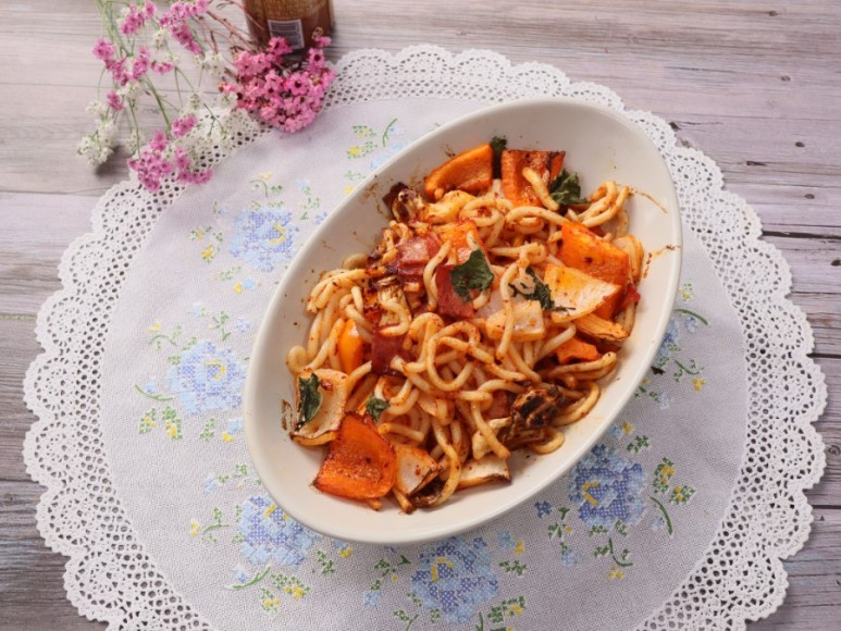 Whip up Delicious Stir-Fried Udon with Fridge Staples! Air Fryer Recipe, Bacon Lovers’ Delight