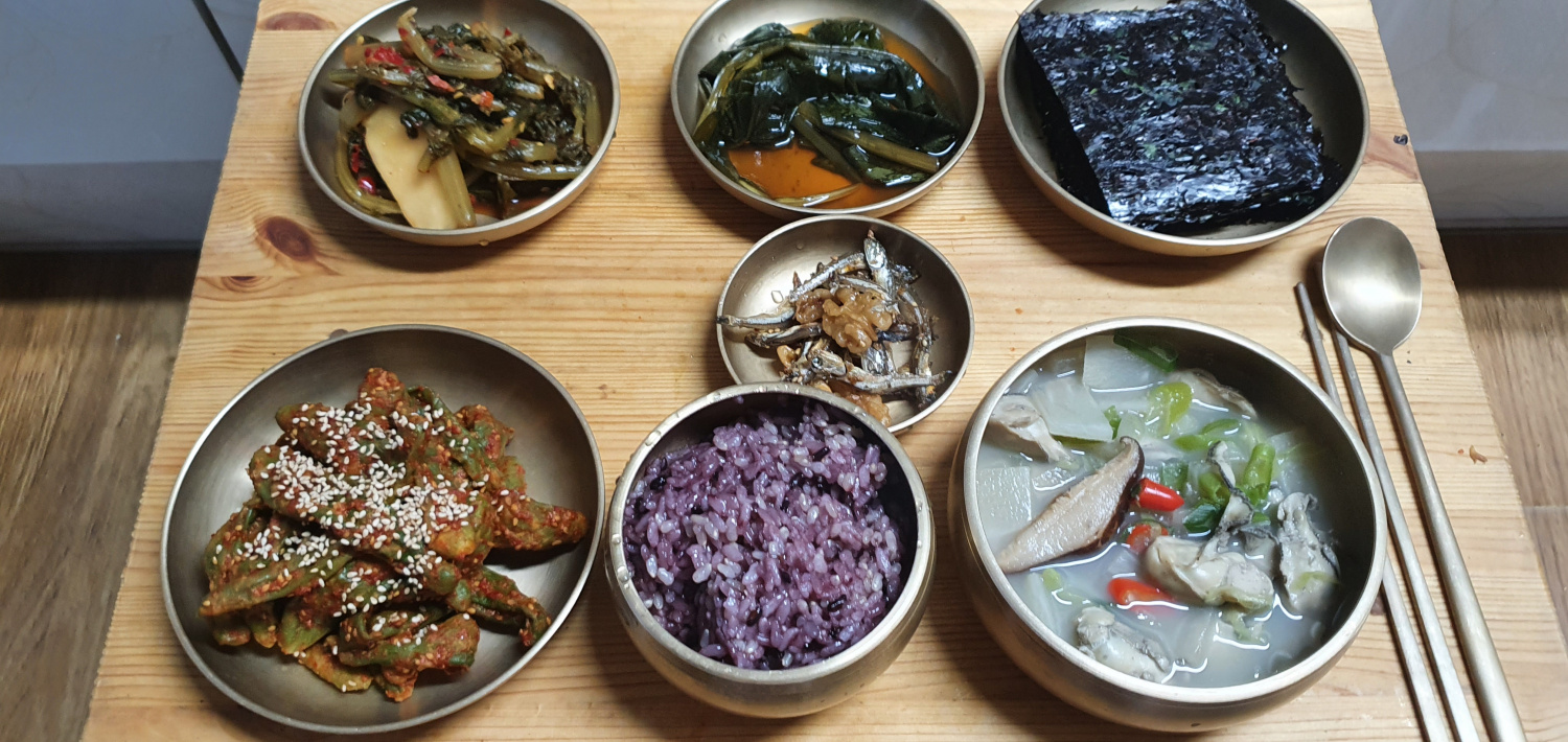 We’ve prepared a comforting soup, an indispensable part of our meal culture where soup is essential for enjoying rice, along with quick frying peppers steamed in the microwave.