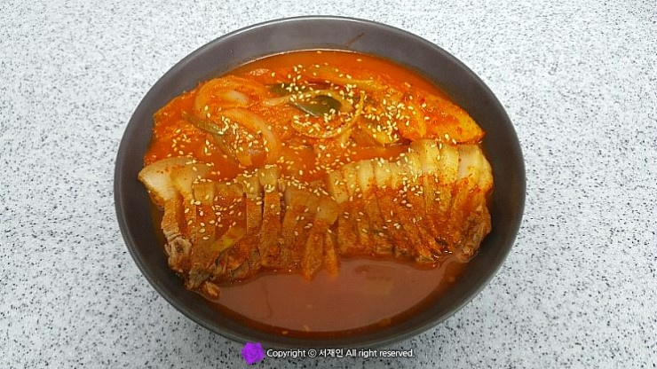 This is a hearty and flavorful Pork Kimchi Stew (Kimchi Jjim) made with well-fermented kimchi, which pairs perfectly with tender pieces of pork. While it’s called a ‘jjim’ (stewed dish), we’ll prepare it with plenty of broth, making it enjoyable like a soup or stew, allowing you to savor every spoonful. Get ready for a deeply satisfying meal that’s perfect for any occasion!